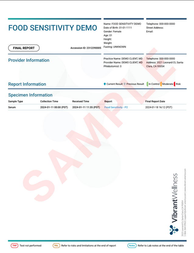 Available exclusively for MAA as an add-on to any Vibrant Wellness lab package. Ideal for clients wanting deeper insight into food-related immune reactions and hidden dietary triggers.